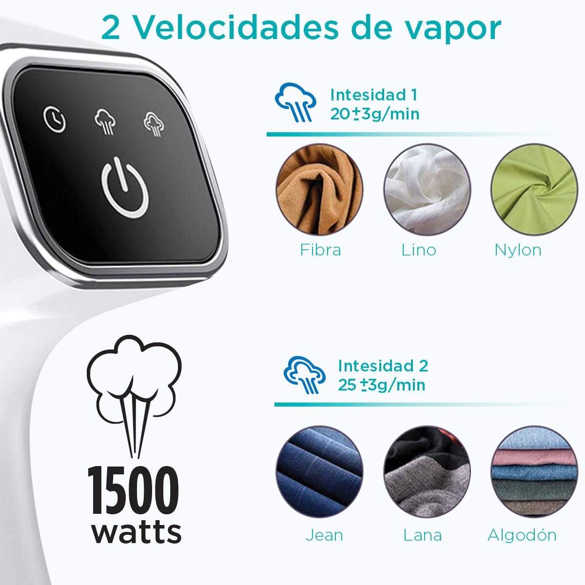 - 1500W de potencia para un vapor intenso y constante.