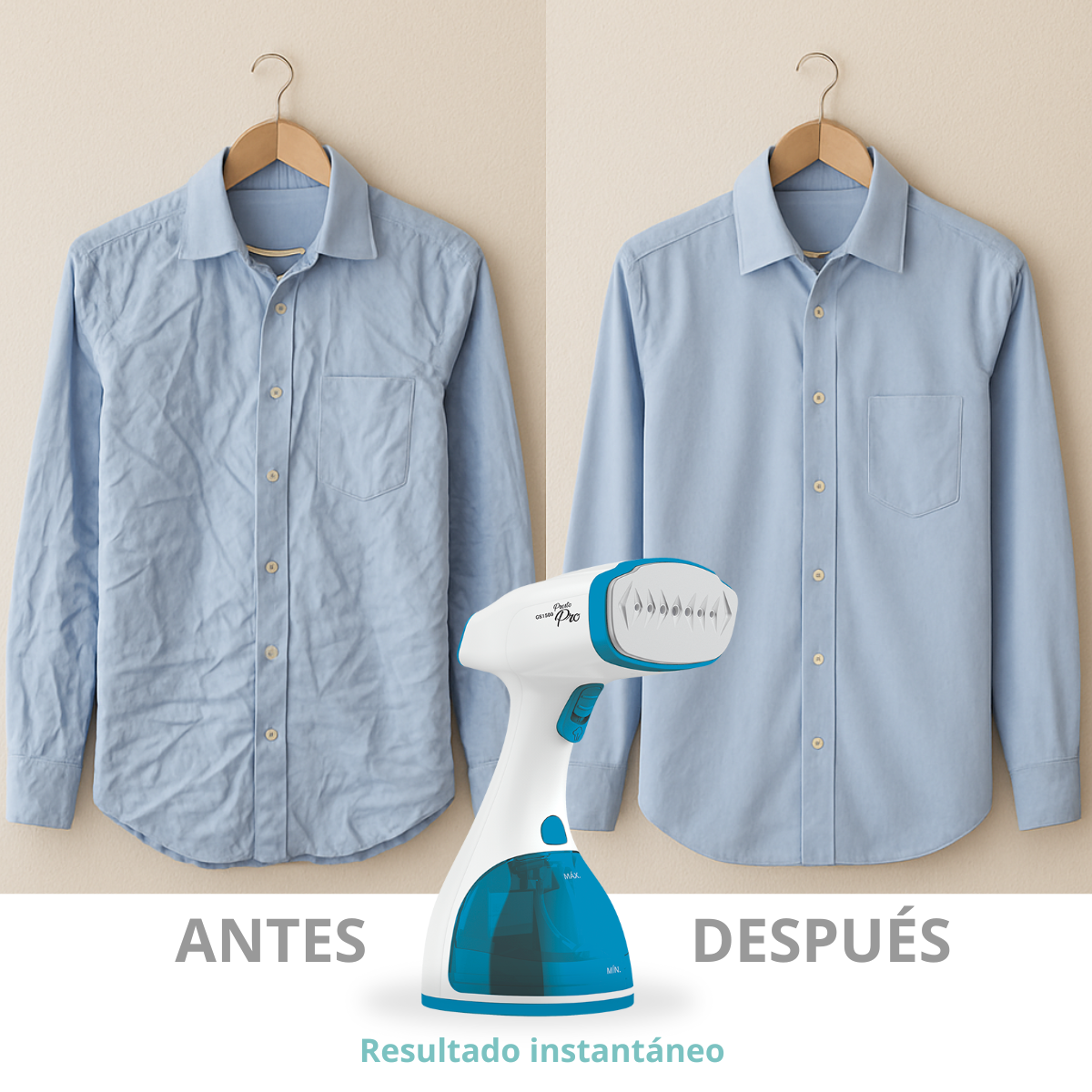- Vapor de alta presión, eliminando hasta las arrugas más difíciles.