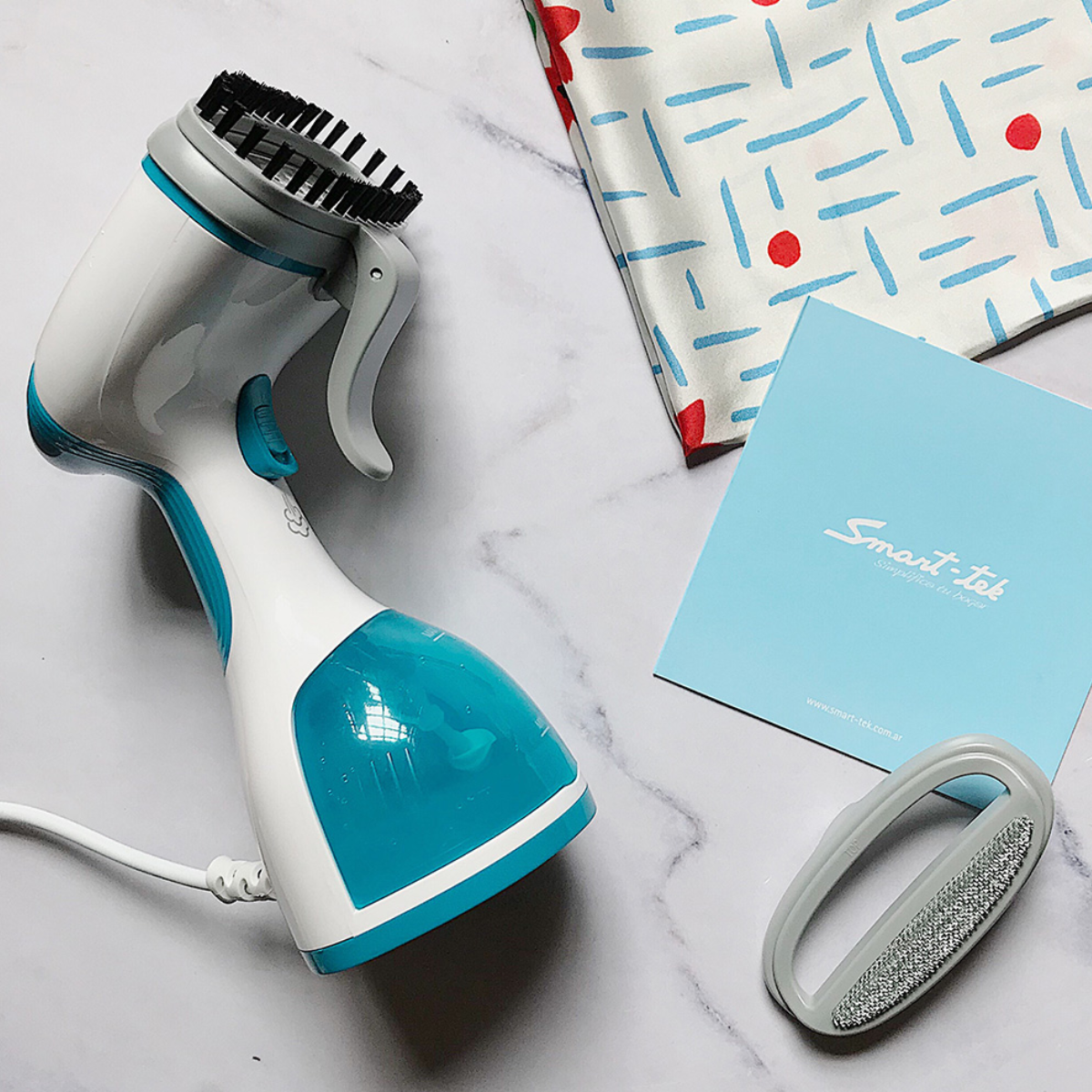 La Plancha a Vapor Smart-Tek te ofrece un planchado eficiente y rápido con su potente caldera de alta presión de 1500W. Gracias a su doble función de planchado horizontal y vertical, es perfecta para usar sobre la tabla o directamente en perchas, eliminando arrugas sin contacto directo.